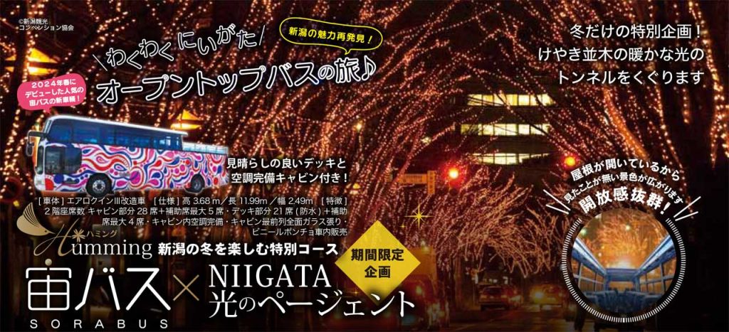 NIIGATA光のページェントにご協賛いただいているハミングツアー様が、光のページェントの点灯にあわせた期間限定ツアーを企画してくださいました。