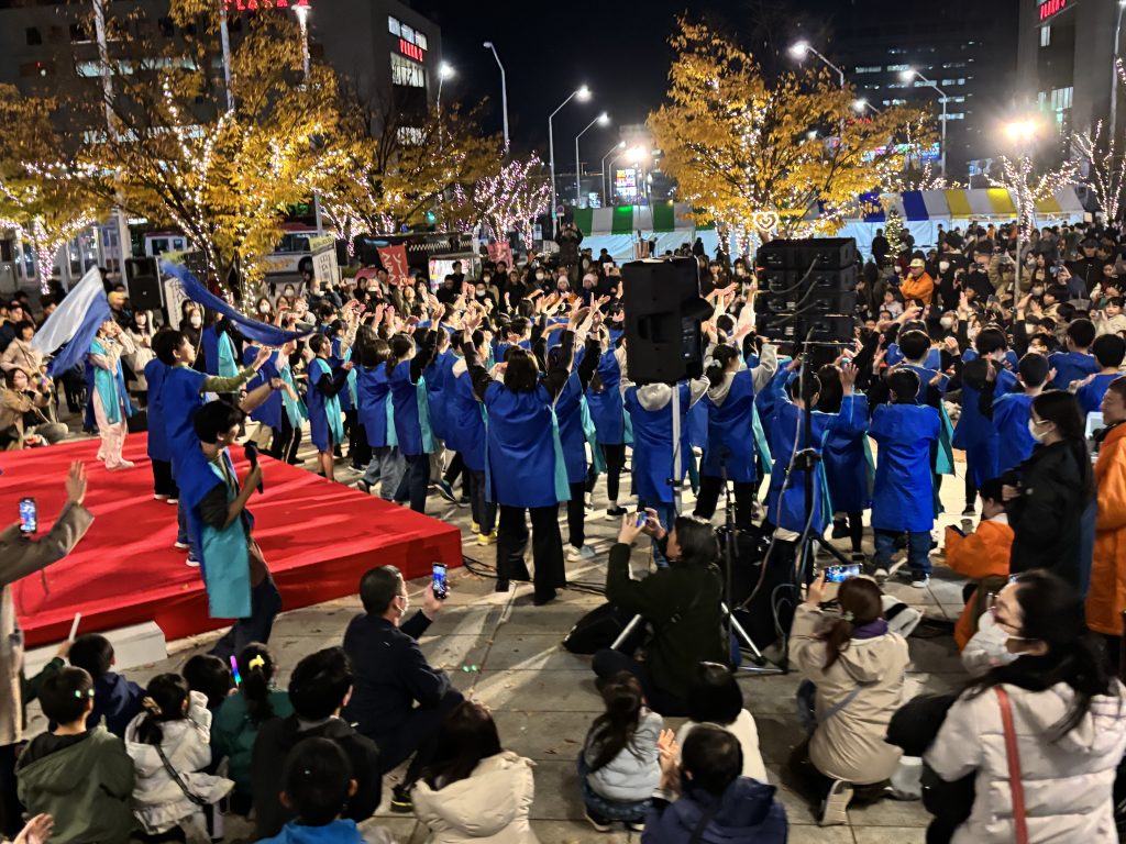 特に、点灯式のチャリティーステージでは、新潟市立南万代小学校6年生約70名の児童が圧巻の踊りを披露し、フィナーレには会場が狭く感じるほど多くの人で賑わいました。毎年イベントの企画段階から関わってくれている新潟市立笹口小学校6年生や、地元の若手ダンスチームメンバーにも良い刺激となり、会場である新潟駅南口広場は、晩秋の新潟の屋外とは思えないほどの熱気と感動に包まれ、大いに盛り上がりました。